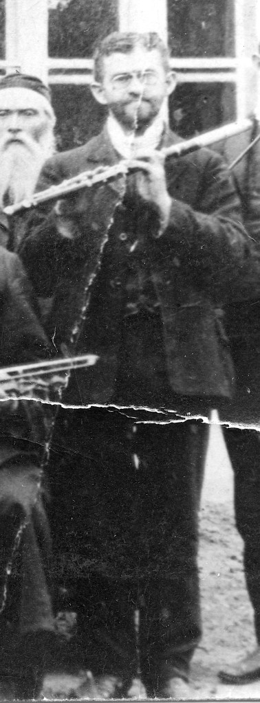 Izak Hersch, more commonly known in our family as Itzik Hersch, played the flute in the Rohatyner Orchestra. According to Izzy Zucker, Izak’s father, Moses, had also taught to him to play the drums. This 1912 photo of him cropped from the larger picture of the band shows Izak holding his flute ready to play. He happens to be the only person among the other musicians in the band including his brothers and father who is pictured wearing glasses at the age of 34. He also stands shorter than his brothers which may have the been the reason he was given the nickname “the imp”. However, there is a story associated with this seemingly unpleasant nickname. When Moses Faust returned to Rohatyn in 1917 after spending two years as a refugee in Russia during World War One having been deported by the retreating Russian Army, he was sick with kidney disease. Moses asked Izak if he could stay in his home but Izak refused. Instead, Izak’s sister, Esther, who was in Vienna during the war, had to return to Rohatyn to take care of Moses. It seems that Esther was not very happy with Izak.