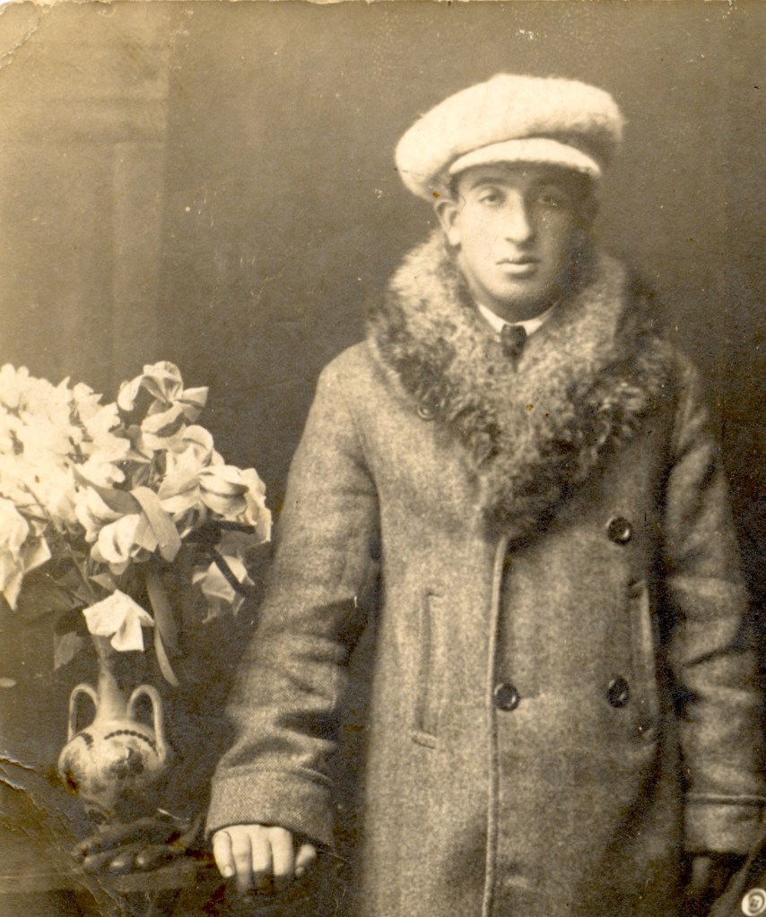 Naftali Faust at the age of 18 dressed warmly for a photograph in 1922. In the May 18, 1930 issue of Chwila, a Jewish Polish-language newspaper published in Lwów, brothers Markus (later Max) Faust and Jack Faust submitted a notice to the paper in honor of their first cousins engagement (Source: Chwila #4002, May 18, 1930 accessed on Libraria.ua)