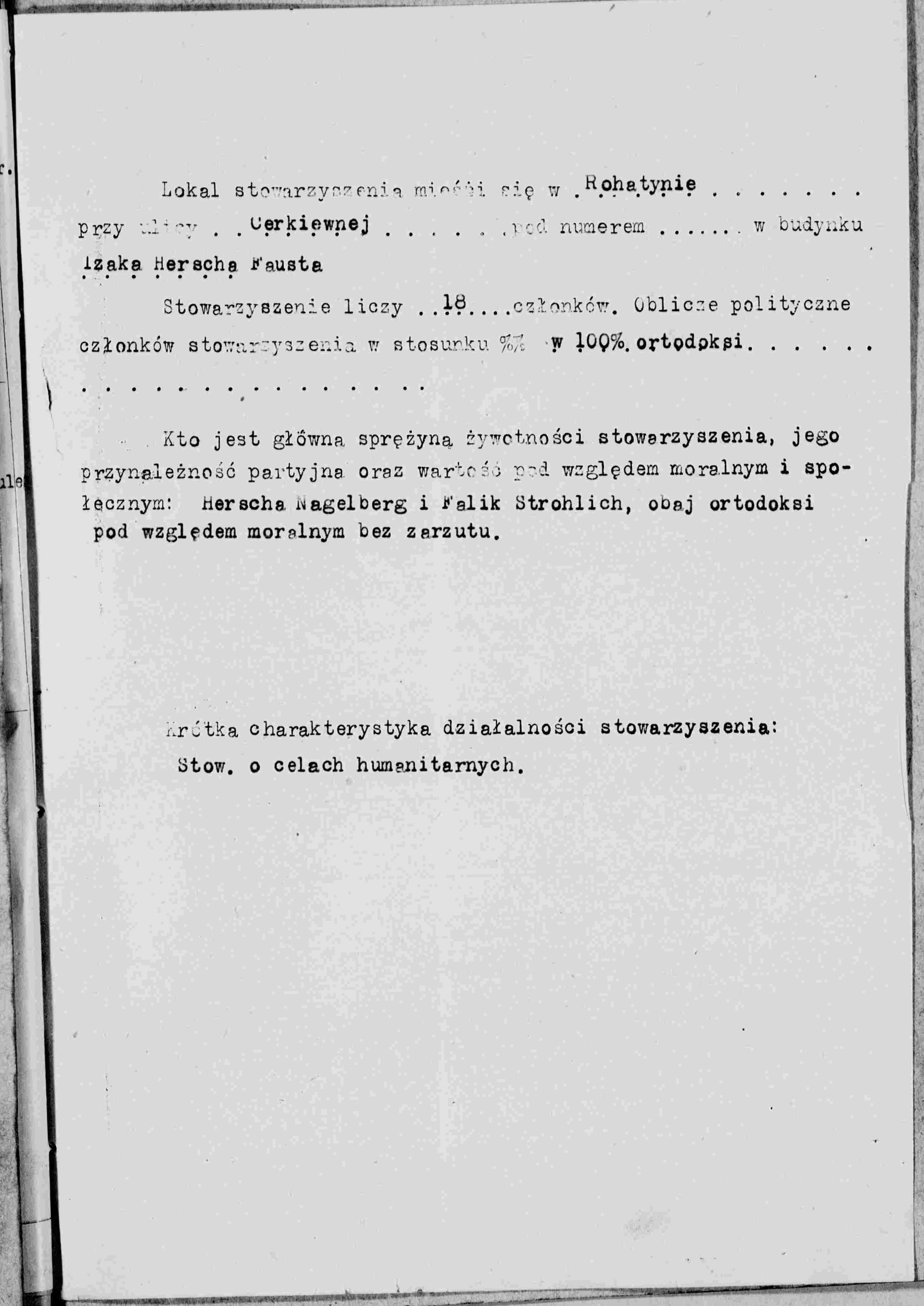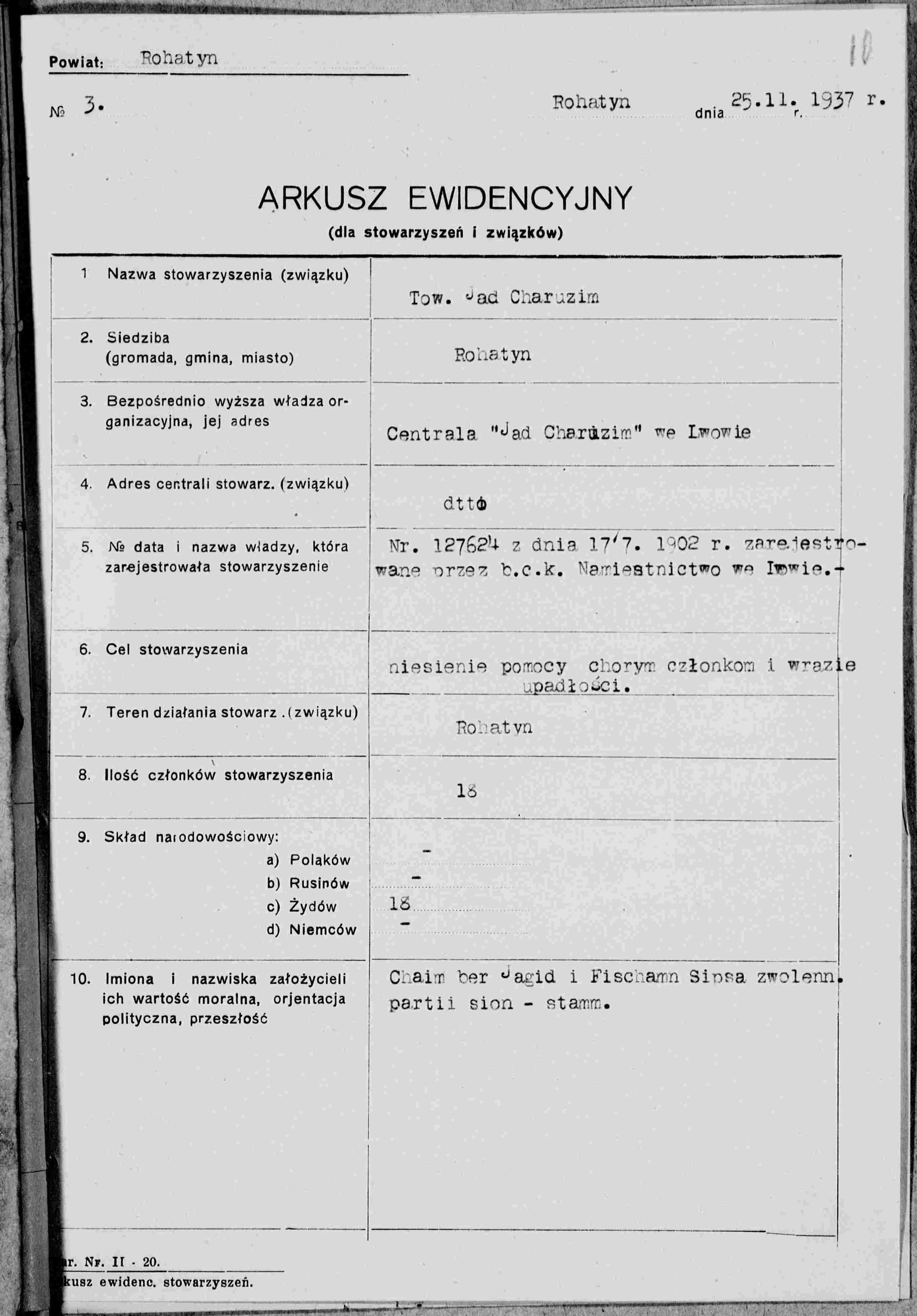 Outside of work, Naftali was a member of the Jewish Sports Club, Makkabi, of Rohatyn. On November 15, 1937, he joined his fellow members in signing a letter in support of dissolution of the club.